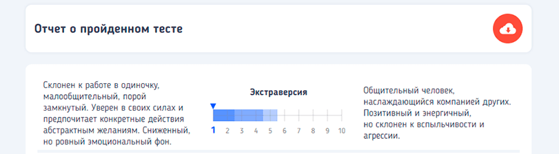 Отвечая по разному на одни и те же вопросы, шкала отклоняется и показывает преобладание разных черт личности. Например ниже вы можете увидеть три разных отчета на экстраверсию:
