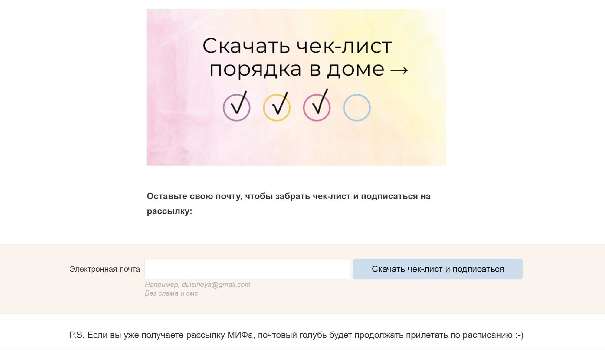 Иногда чек-лист добавляется, когда человек уже совершил целевое действие: например, сделал заказ или зарегистрировался. Так что это не основная мотивация клиента, а приятный бонус.