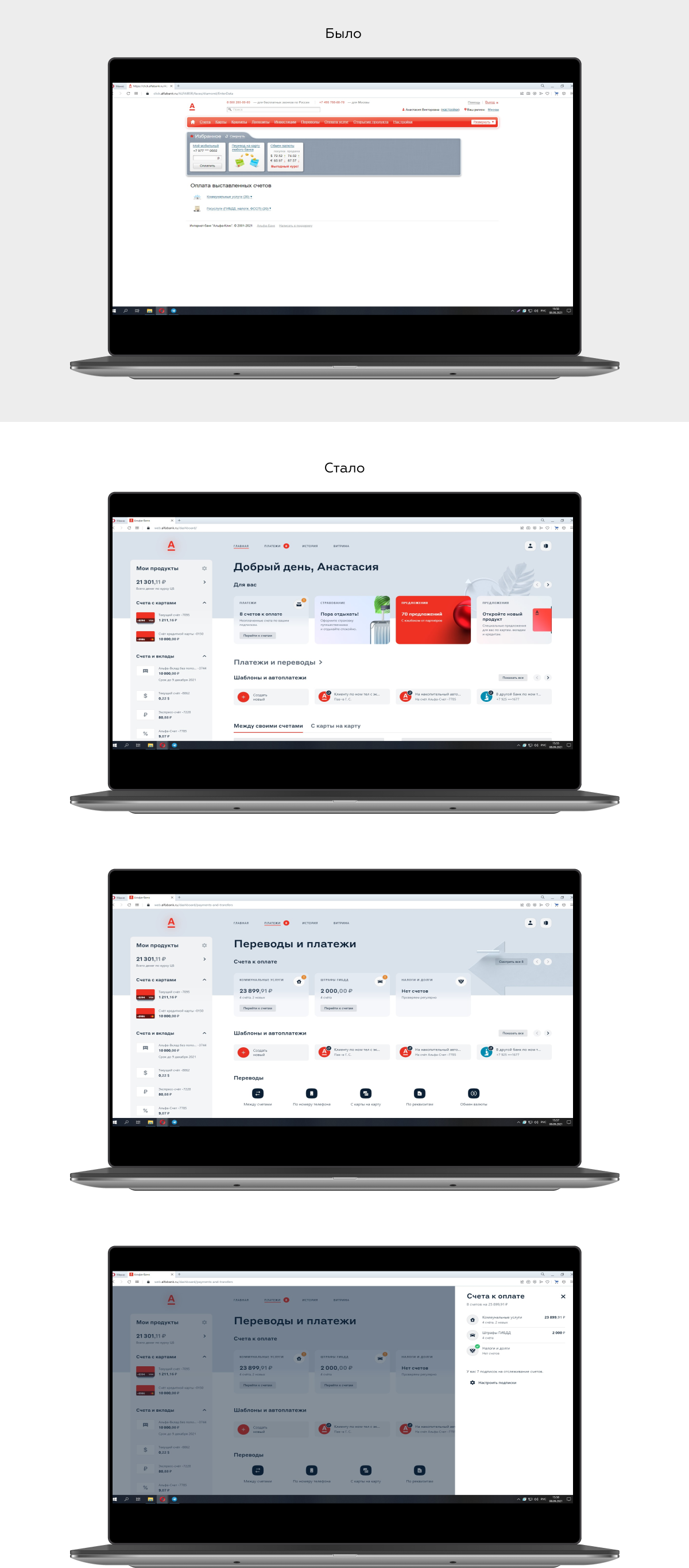 Обновление интернет-банка Альфа-Клик действительно оказалось масштабным. Больше всего от обновления выиграла основная аудитория интернет-банков — клиенты, предпочитающие решать финансовые задачи на больших экранах, а также возрастная аудитория, которой по разным причинам сложно использовать мобильное приложение. И те, и другие остро нуждаются в удобном сервисе, особенно в условиях сокращения клиентских офисов банков.