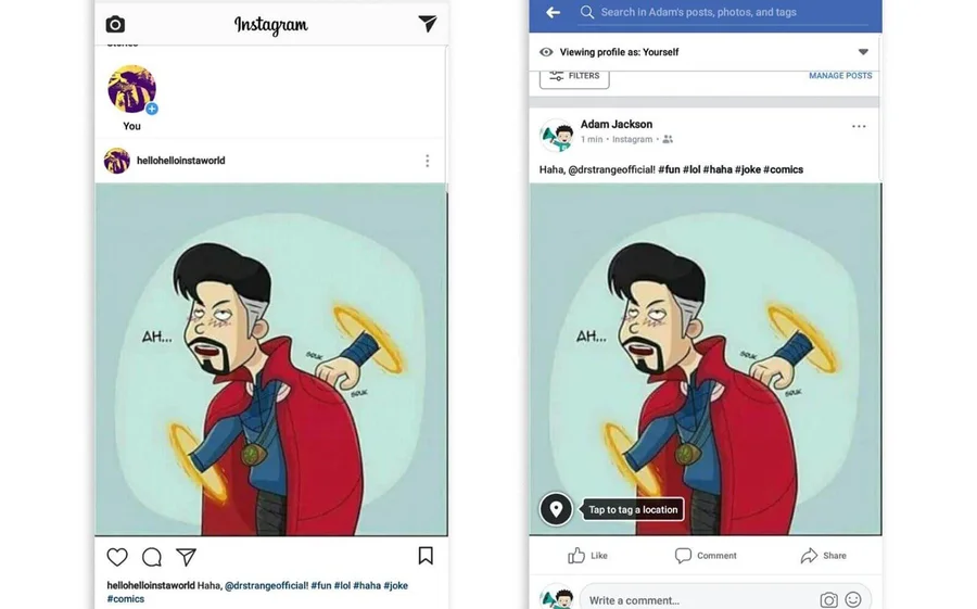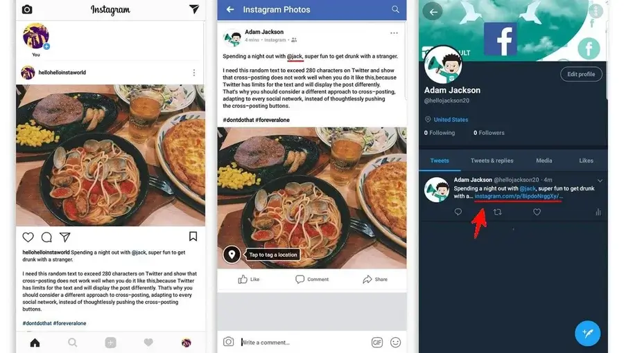Основной недостаток механического кросспостинга без изменений — вы не учитываете особенности конкретной соцсети. Например, в Фейсбуке не так популярны и актуальны хештеги, как в Инстаграме. Пост со списком хештегов в конце или в тексте будет выглядеть чужеродно. Также в Фейсбуке не работают отметки профиля через @ и ник. У человека, которого вы отметили в Инстаграме, в Фейсбуке может быть другой логин.