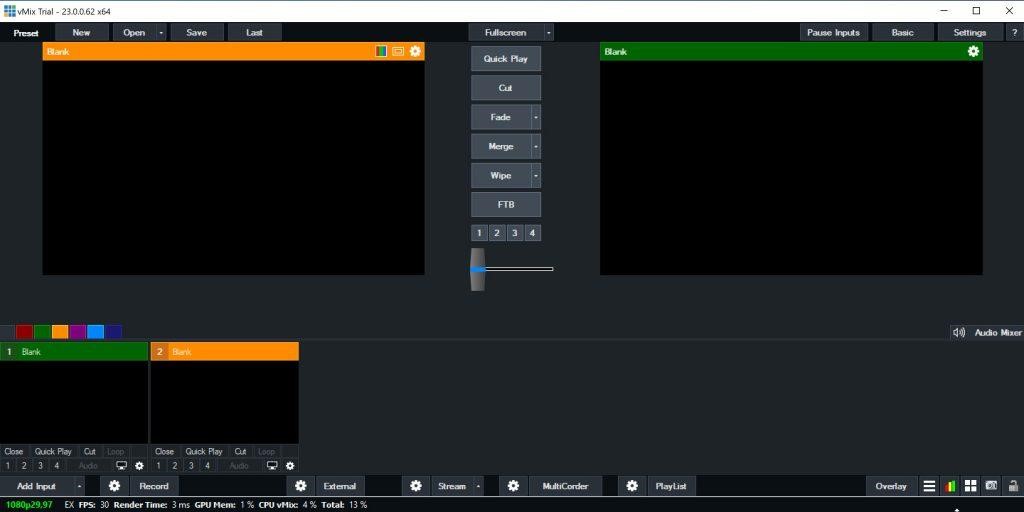 Возможности профессионального программного средства vMix не ограничиваются одними стримами игр: можно проводить трансляции хоть вебинаров, хоть обычного общения с друзьями. Оно имеет обширный набор настроек и довольно сложный в освоении интерфейс, однако если в нем разобраться, то перед вами откроется доступ ко множеству функций, которых нет у многих аналогичных программ для стриминга.