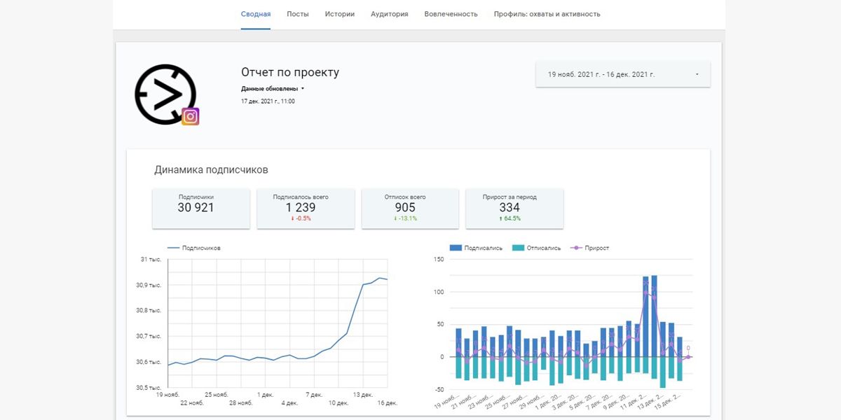 В дашбордах DataFan есть информация по аудитории, постам, вовлеченности, динамике подписчиков – все в удобном автоматическом дашборде
