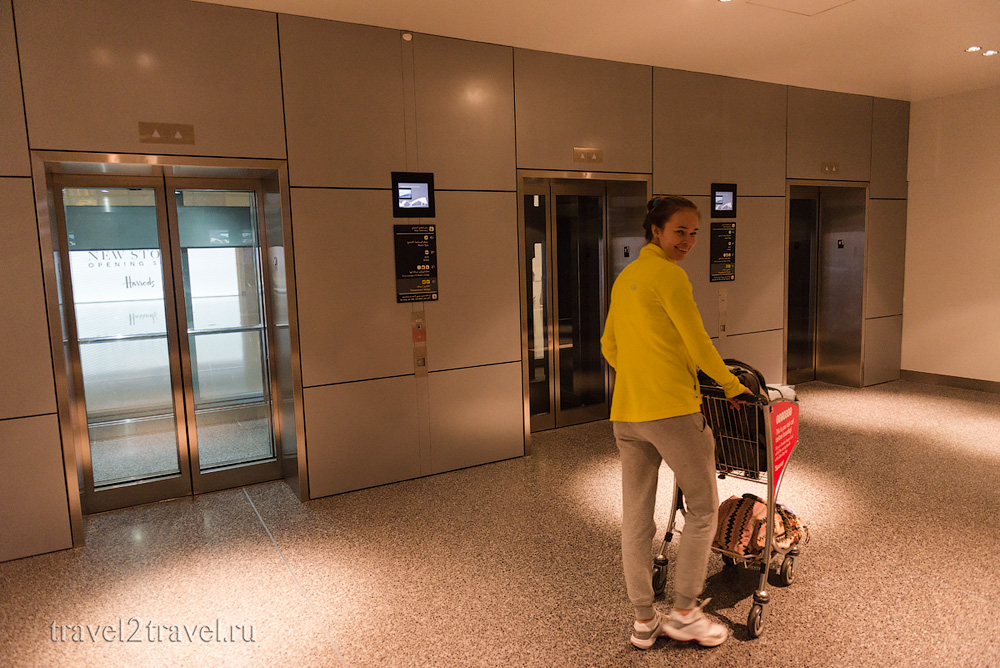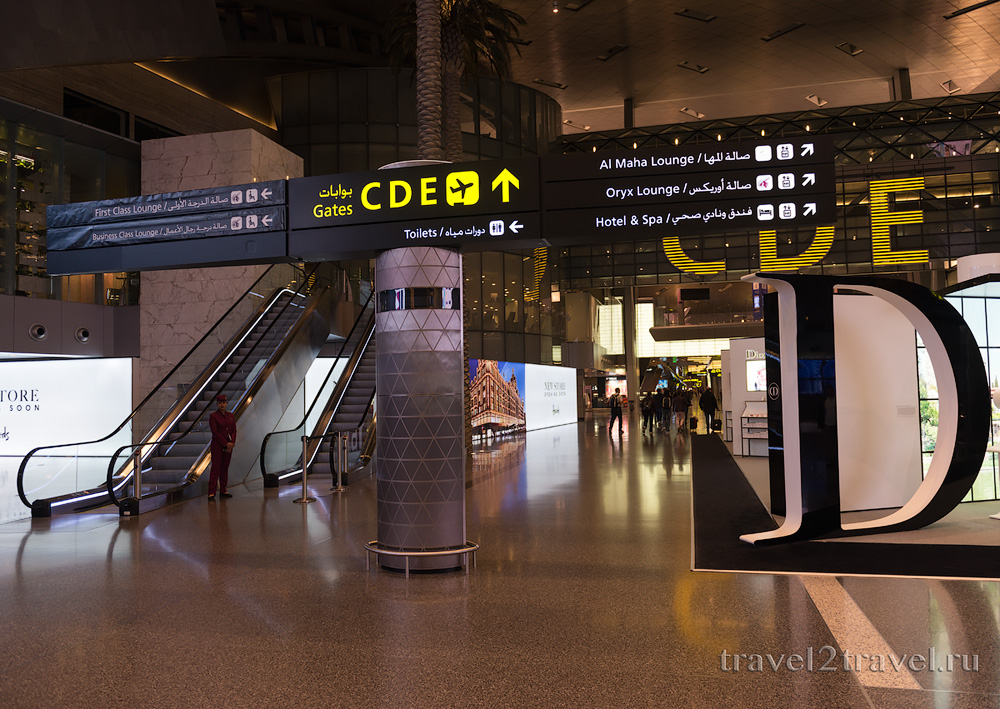 С правой стороны будет стойка Катарских авиалиний, на которой делают апгрейды билетов, напротив нее расположены лифты. Зал ожидания Maha Lounge находится на втором этаже.