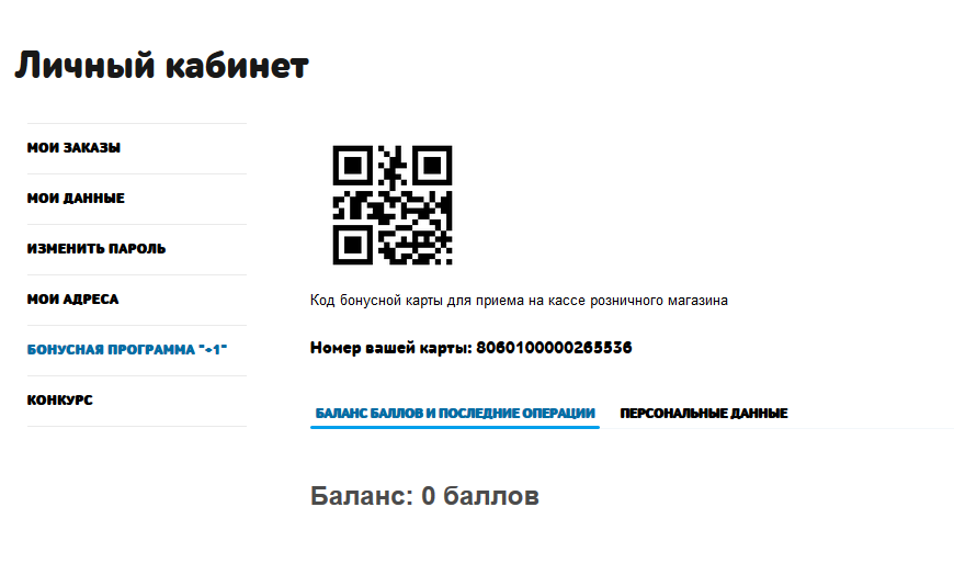 После входа в ваш профиль, перейдите в меню «Бонусная программа +1». На этой странице будет видна вся информация о движении бонусов по вашей карте в разделе «Баланс баллов и последние операции».