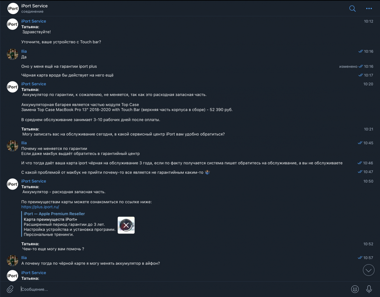 Недавно мой друг обратился ко мне с проблемой. Ноутбук MacBook Pro. Куплен 2 года 11 месяцев лет назад в iPort. Конечно же, приобретена карта преимуществ.