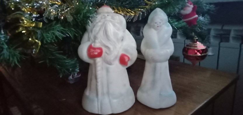 Вместе с ёлкой в советскую традицию празднования Нового года вошли и «главные герои» этого праздника – Дед Мороз и Снегурочка, им нашлось достойное место под новогодним деревом. Фигурки первых советских Дедов Морозов изготавливались из ваты и бумаги. Ватных дедов Морозов можно было встретить в российских домах ещё в 1990-е, а кое у кого они сохранились и до сих пор. Изготовленная из простейших дешевых материалов фигурка сегодня является настоящим раритетом.