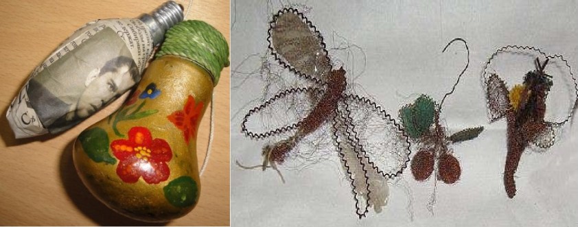 Новогодние игрушки времен Великой Отечественной войны — слева из лампочек, справа — из проволоки.