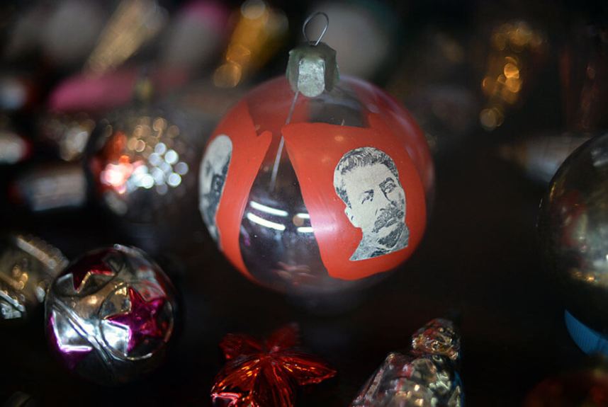 «Идеологизированным» новогодним украшением советской эпохи стали стеклянные шары с нанесенными на них ликами Ленина и Сталина. Они были выпущены к 20-летию Октябрьской революции. Однако вскоре такие игрушки исчезли из-за «неоднозначности» их восприятия – «вешать» вождей, пусть даже и на новогоднюю ёлку, не подобало