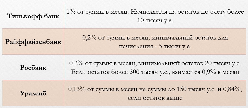 - Тинькофф Банк. С 23 июня банк вводит плату за обслуживание валютных счетов – стоимость составит 1% в месяц при балансе свыше 10 000 у.е. Комиссия будет списываться ежедневно, такое правило коснется владельцев карточных счетов в долларах США, евро, фунтах стерлингов и швейцарских франках. Действующие накопительные счета в долларах и евро будут закрыты, а хранящиеся на них средства переведут на счета клиентов в этих же валютах.