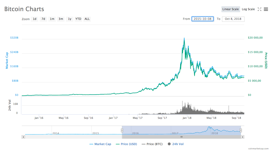 Считается, что самое подходящее время для того, чтобы вкладывать в криптовалюту было несколько лет назад. Но парадокс заключается в том, что это время еще не прошло. Скорее всего, вложив небольшую суму денег в крипту сегодня, через год-два вы будете жалеть, что не вложили больше. И это нормально. Такие чувства переживают криптоинвесторы каждый год. Чтобы это стало понятней, достаточно взглянуть на график цены биткоина.