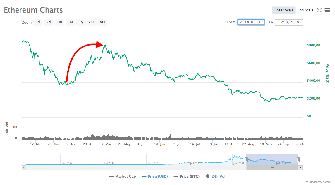 Начиная инвестирование на дампе, не обращайте внимание на советы по типу «panic sale». Посмотрите на коррекцию весны 2018 года