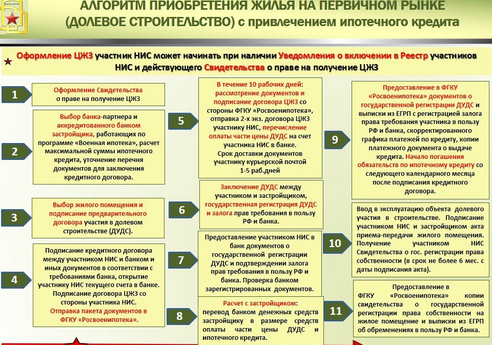 - Военная ипотека, закон №117-ФЗ. Доступна для военнослужащих-контрактников, участвующих в накопительной программе (НИС) не менее 3 лет. На деле механизм работает как поэтапное погашение займа на покупку жилья за счет средств Минобороны. Возвращать деньги в бюджет придется только тем, кто прослужил в армии менее 10 лет и был уволен по собственным причинам или из-за невыполнения условий контракта. Тем, кто отдал Родине 20 лет службы, ничего выплачивать не придется даже после увольнения.