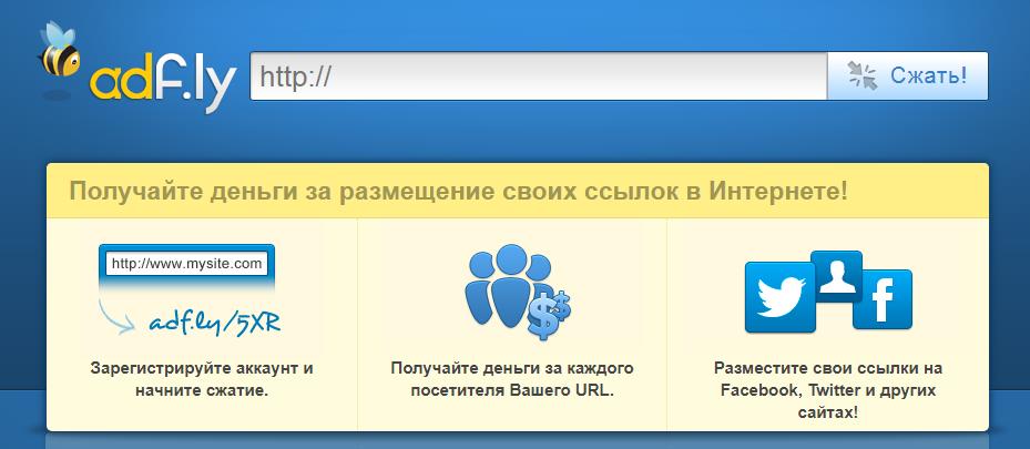 С сервисами для укорачивания ссылок, заработать на сайте проще простого. Нужно лишь прогнать через них каждую ссылку на своём ресурсе. Когда пользователи будут по ним переходить, сначала откроется страничка с рекламой, а через несколько секунд выполнится автоматический переход на нужный адрес: