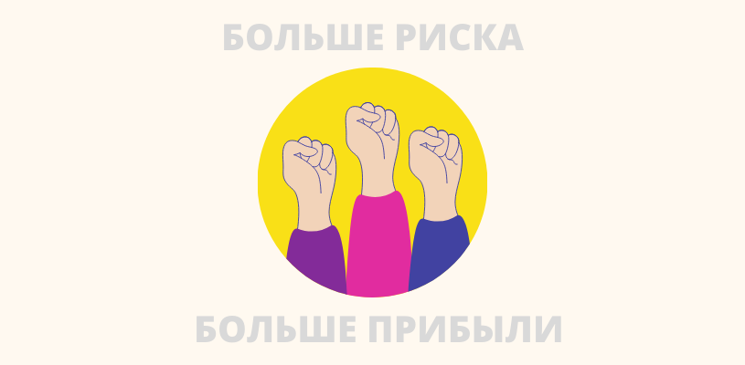 Высокий риск – это, когда портфель на 90–70% состоит из акций, средний риск – 60–40% акций, низкий – 30–10%.