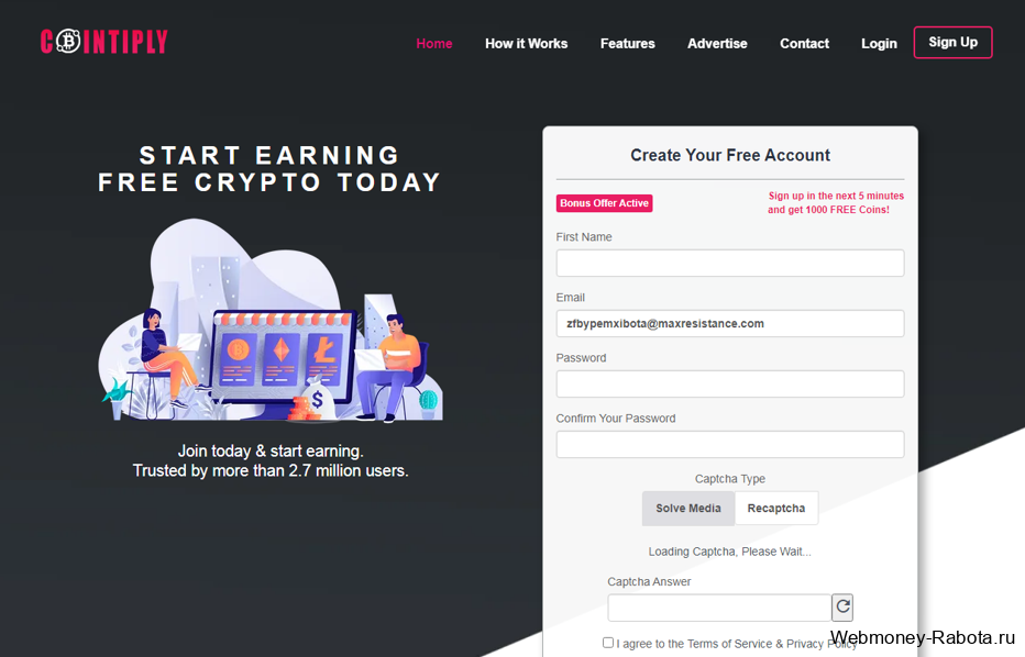 Знания, навыки и вложения там не нужны. Вы просто регистрируетесь на сайте, раз в 5-60 минут вводите капчу и собираете монетки.