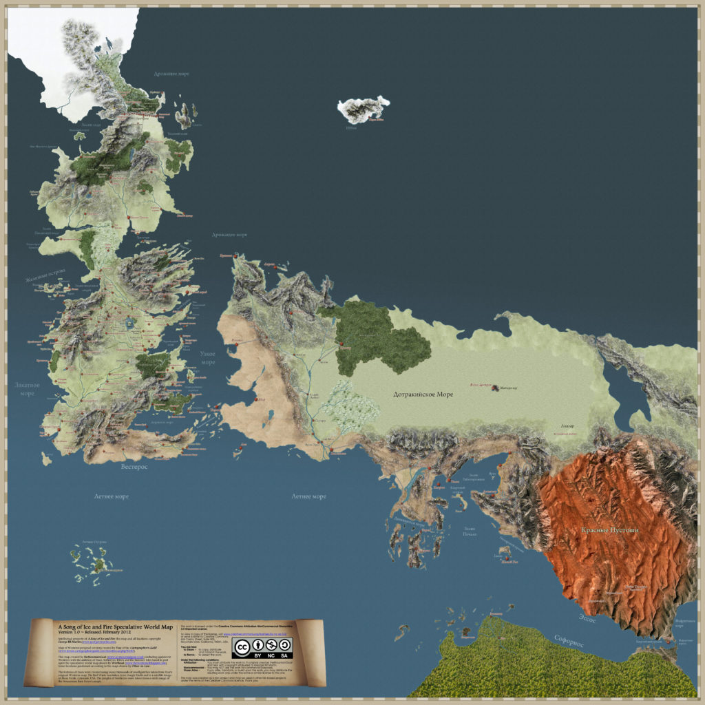 Полная карта мира Игры Престолов (в крупном масштабе):