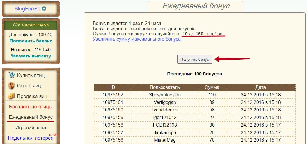 ; - каждый день заходить в игру, получать ежедневный бонус и инвестировать бонусные средства в птиц