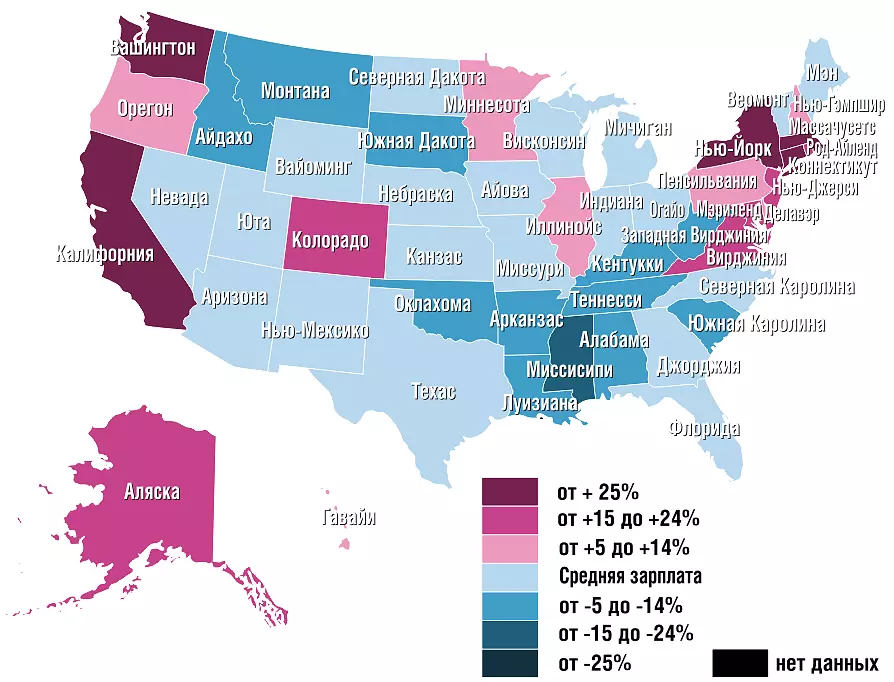 И напротив, есть богатые штаты, где труд учителя может быть оценен в 2 раза выше. Так в штате:
