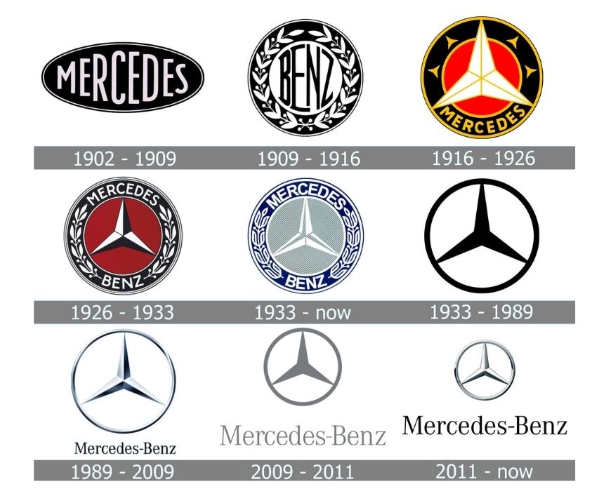 Эмблема бренда менялась с завидной частотой. В 1902 году это был обычный овал с названием внутри. Затем он принял более знакомую форму, в виде трехконечной звезды, но золотистого цвета. В 1906 году разработчики добавили имя внизу и оформили все в черный, белый и красный цвета.