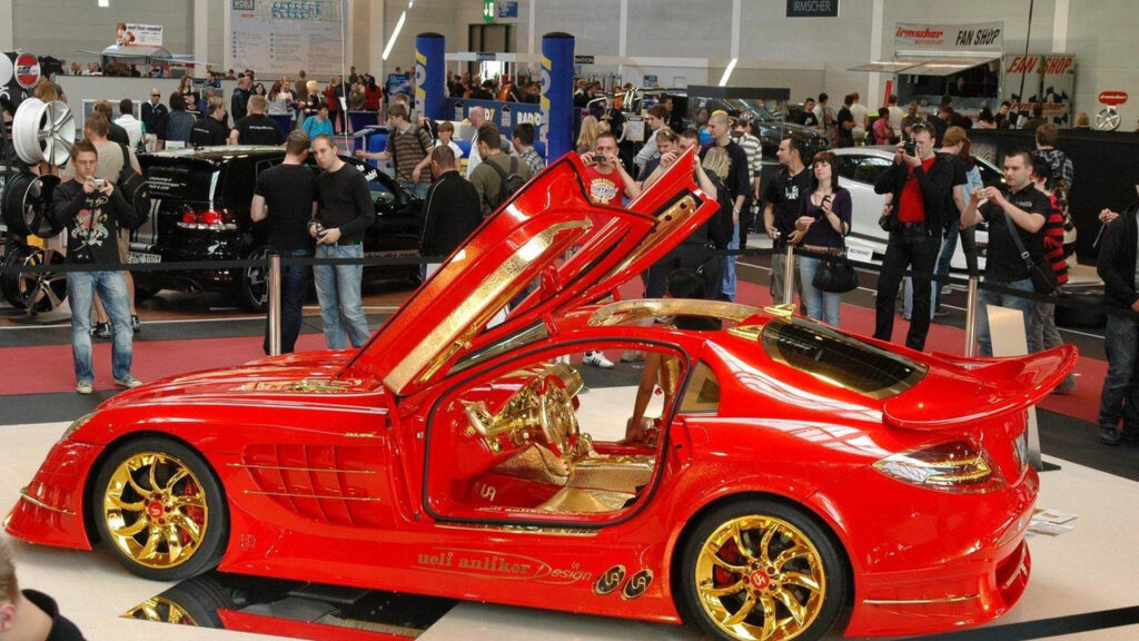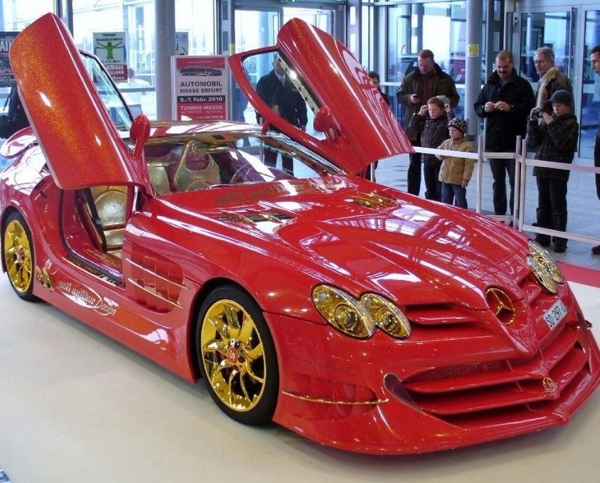 Вкус дизайнера этого Мерседеса спорен, но усилия, вложенные в его создание, впечатлят любого. 35 человек отработали более 30 000 часов. Колеса, фары и дверные ручки покрыты золотом и стоят более 10 000 000 долларов!