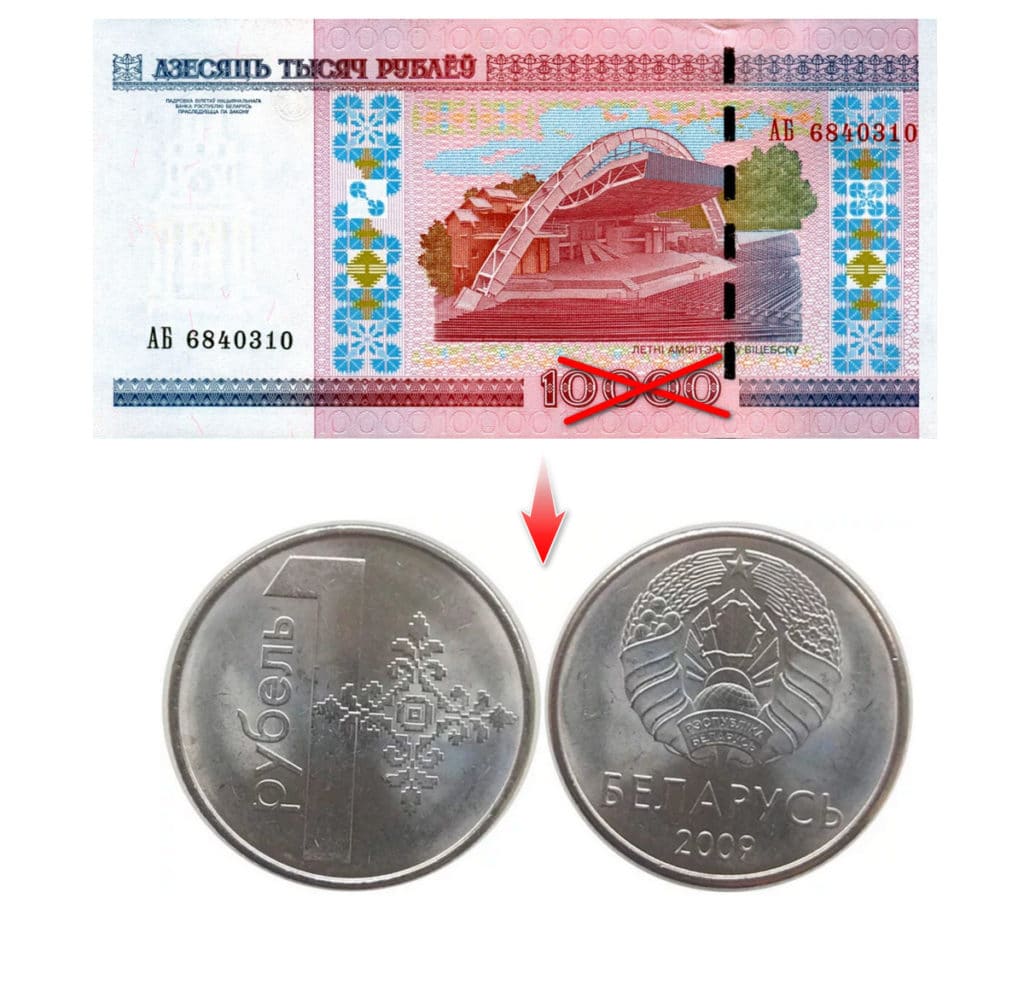 Поскольку деноминация валюты в РБ прошла относительно недавно (в 2016 году, в то время как в России — в 1998 году), то пример этой денежной реформы будет максимально точно отражать взаимосвязь двух терминов.