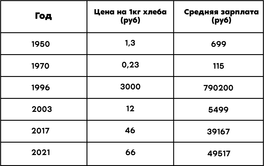 Сравните: килограмм хлеба в 1927 г стоил 20 коп, в 1937 — 1 руб, в 1947 — 6.20.
