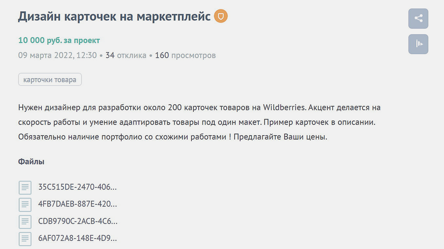 Пример заказа на фрилансеСкриншот: «Хабр Фриланс»