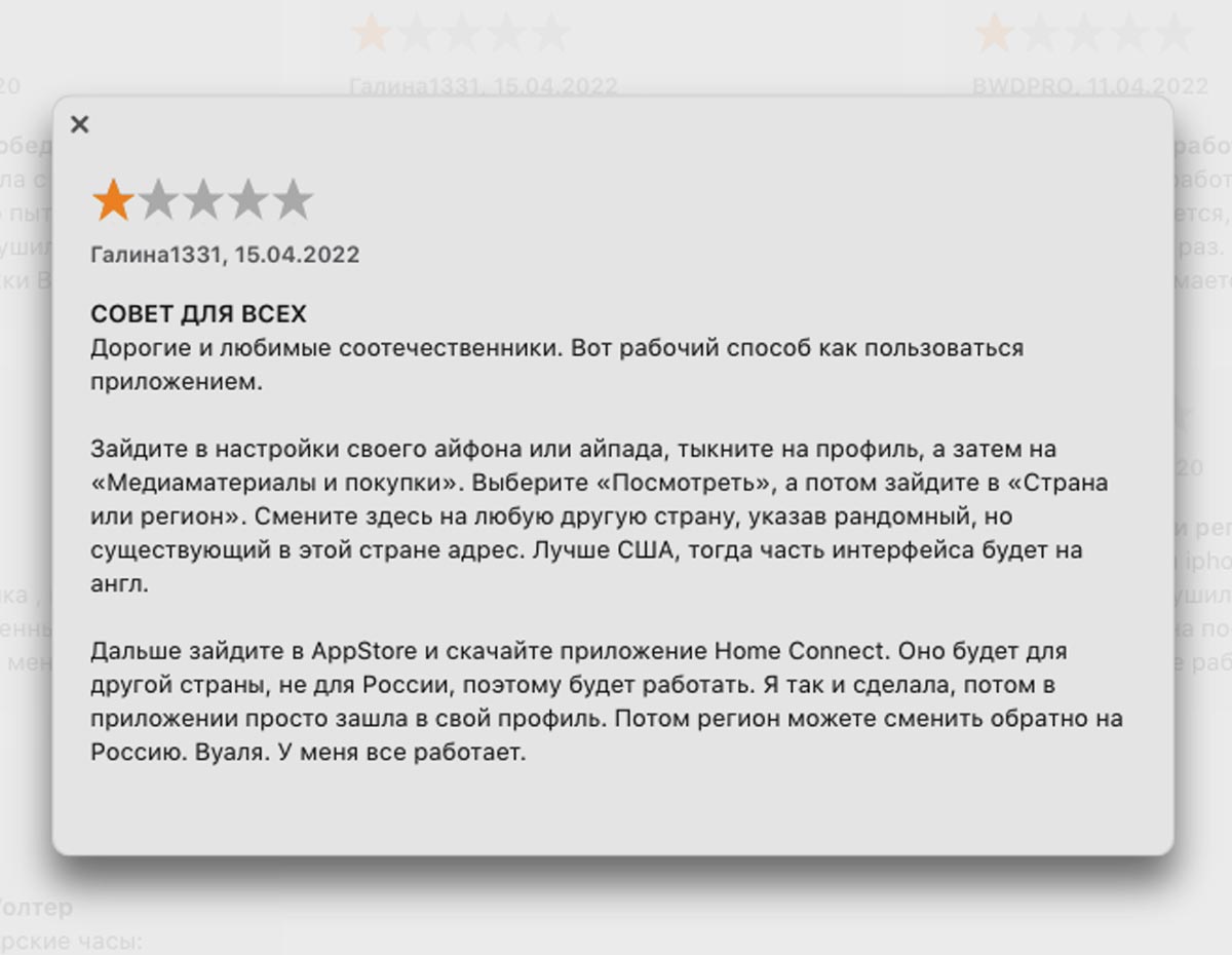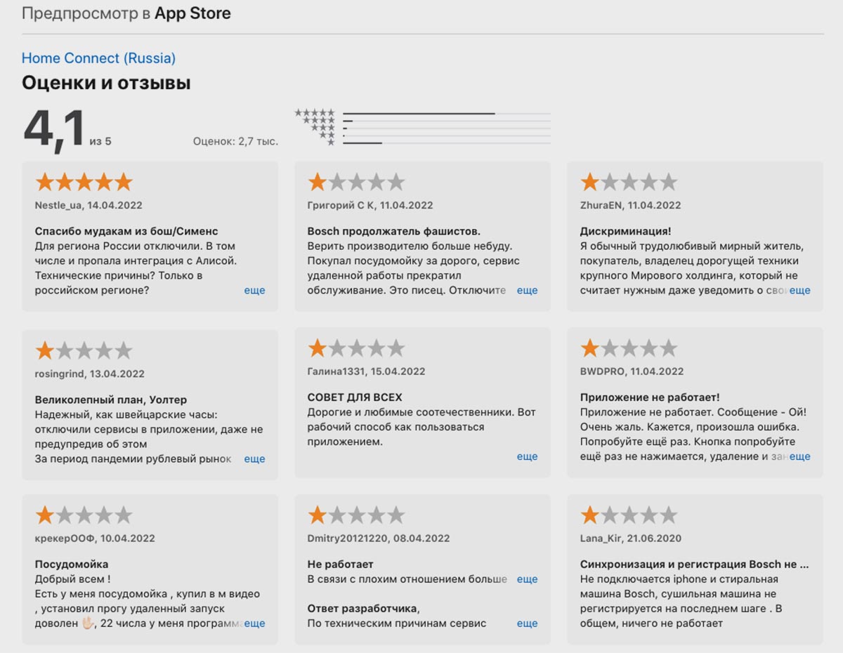 Все дело в отключении облачного сервиса Home Connect для пользователей из России. Некоторое время поддержка списывала все на технические работы, но потом стало известно о полной остановке обслуживания отечественных пользователей.
