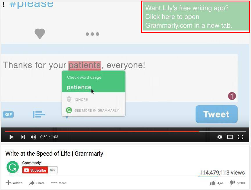 Notice the incredible amount of views each of these videos have? YouTube traffic must have a great conversion rate for Grammarly to have pushed their ads to this level. The ads are great, so I’m not surprised.