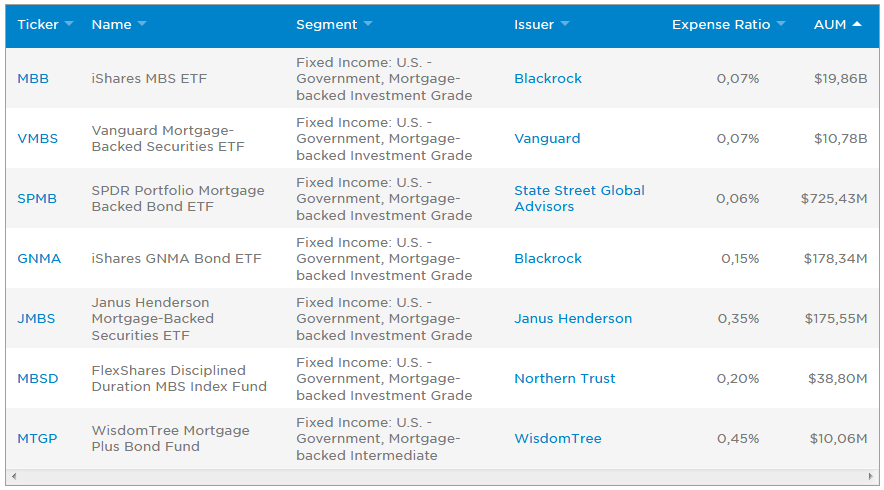 Для мировых (и в том числе российских) инвесторов существует возможность вложиться в пул ипотечных ценных бумаг США инвестиционного рейтинга через биржевые фонды ETF:
