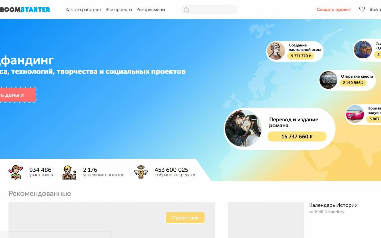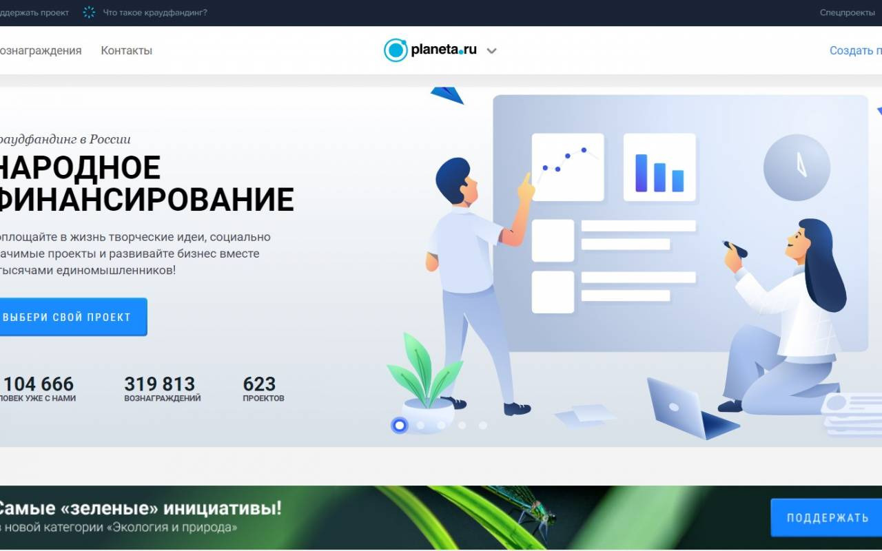 Показатели этого проекта немного уступают Planeta, но вклад в развитие краудфандинга в России не менее значим. Проект появился в 2012 году, на платформе реализовано 1195 проектов.