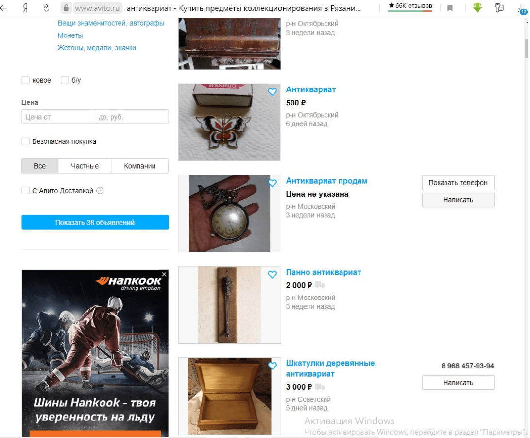 На Авито можно посмотреть цены на антиквариат. В среднем они варьируют от 500 рублей до 10 тысяч (в зависимости от товара).