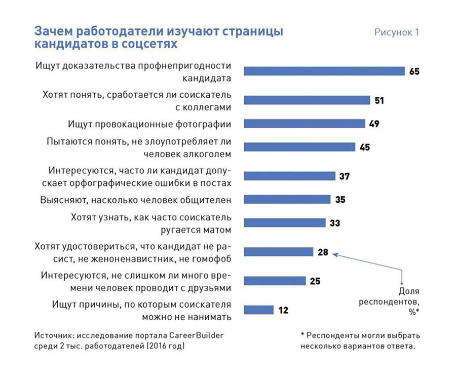 И что вы думаете? Из пяти кандидатов, которых я посоветовала, не подошел никто. Почему? «Первое резюме – грамматические ошибки. Второе – тоже грамматические ошибки. Для нас это неприемлемо. А у остальных кандидатов в соцсетях фотографии с тусовок, с пивом – это не наш формат».