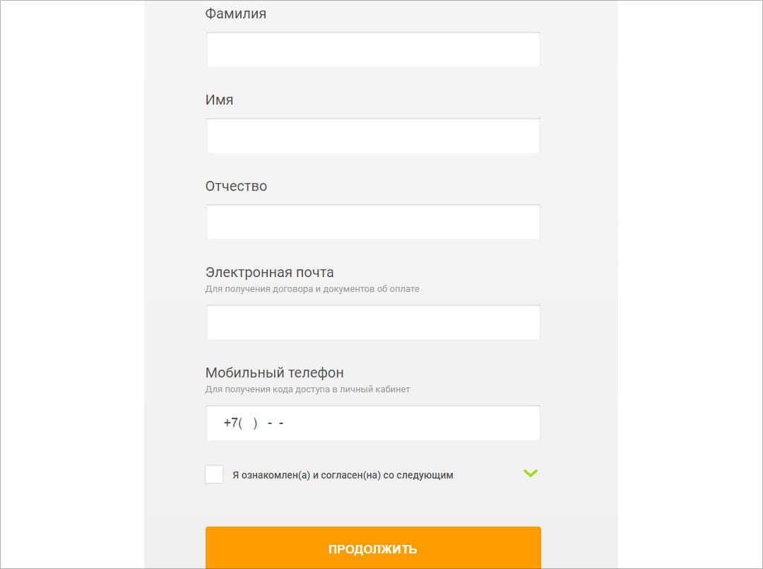 Следующим шагом заполните форму личными данными:
