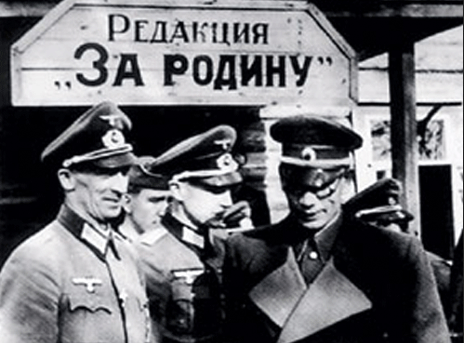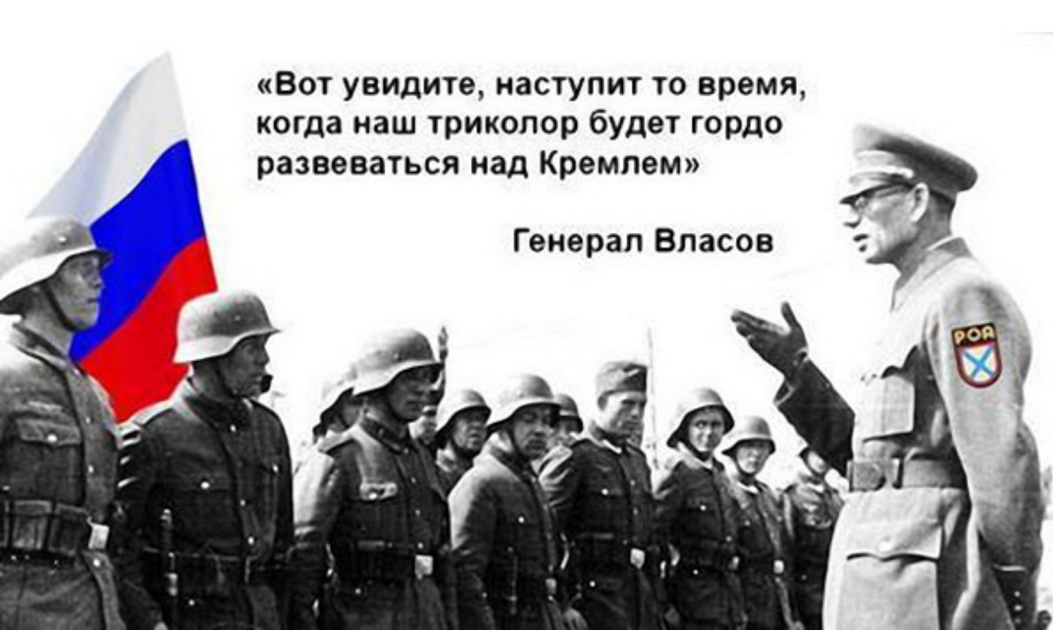 Во время Отечественной войны по личному указанию Гитлера бело-сине-красный триколор в качестве знамени был вручен армии генерала-предателя Власова, которая официально в фашистской Германии именовалась — «Восточный легион СС», и воевала против нашей страны и народа на стороне Гитлера. Этот триколор во всех власовских штабах висел рядом с портретом Гитлера и его штандартом.