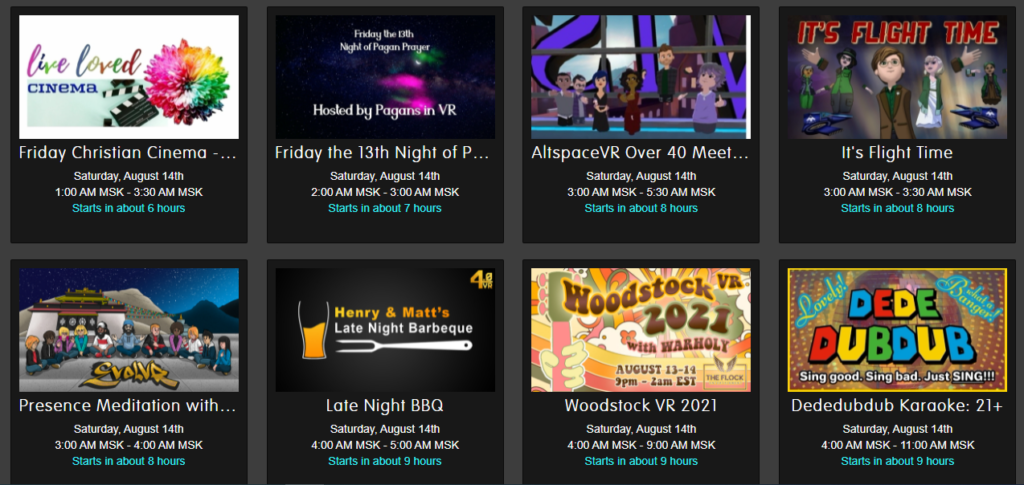 Помимо крипто-метавселенной, существуют также многочисленные события, относящиеся к NFT в виртуальных мирах, таких как AltspaceVR, и в различных пространствах, построенных на Mozilla Hubs.