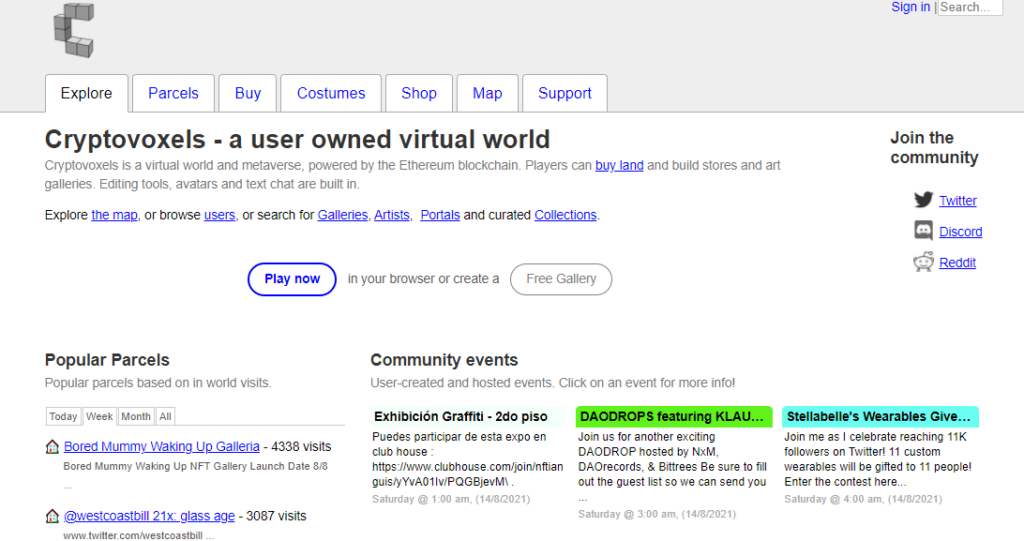 Существует довольно живая и очень яркая крипто-метавселенная. Два самых популярных пространства — Cryptovoxels и Decentraland.