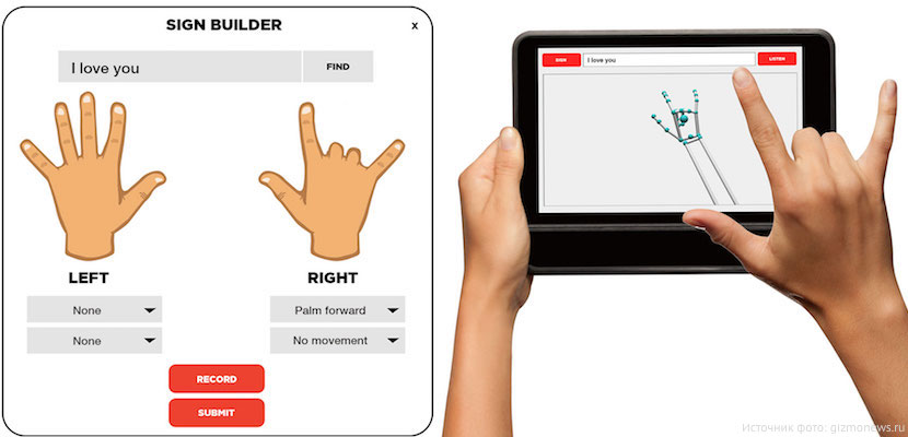 Сегодня Uni – не просто программа, а ещё и специальный планшет с чехлом. Датчики улавливают, что человек показывает руками в данный момент, а затем перерабатывают это в голосовое сообщение. Для расширенного пользования устройством можно скачать иностранные словари, чтобы общаться за рубежом. К сожалению, пока проект готов не полностью. Работа над ним продолжается, так как программа должна научиться считывать и распознавать различные сленги, диалекты и акценты.