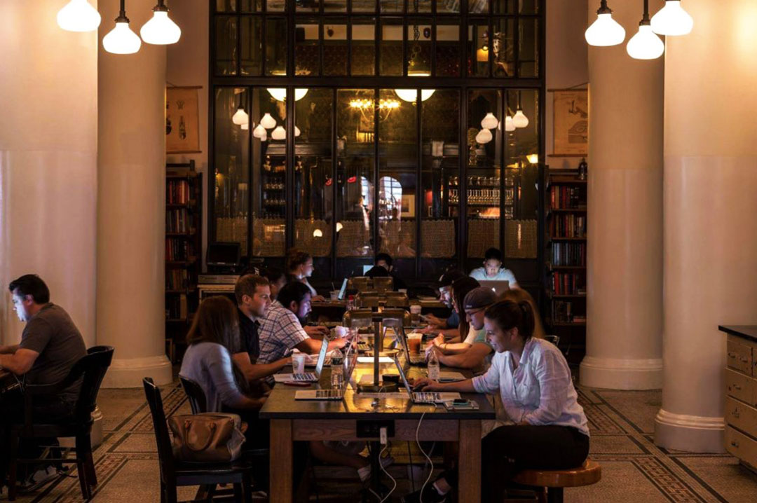 Длинные массивные общие столы при входе в отель Ace в Нью-Йорке заняты людьми с ноутбуками. К персоналу отеля они не имеют никакого отношения. Это дизайнеры, стартаперы, фрилансеры, учёные, директора рекламных агентств, адвокаты и другие специалисты. Одни работают здесь постоянно, другие приходят иногда, чтобы сменить офисную обстановку. Ace стал модным местом для деловых встреч, здесь даже проводят собеседования. Основатели отеля говорят, что именно к такой атмосфере они и стремились. Кроме того, обитатели коворкинга не только делают отель модным в творческой среде, но и приносят дополнительный доход. Сэндвичи в местных кафе не залёживаются на прилавках, и кофе льётся рекой.